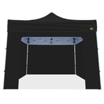 Three solid black sidewalls create a clean, private enclosure, blocking wind, sun, and visual distractions. The door wall provides zippered access for easy entry—roll it up to welcome guests or zip it closed for privacy during setup, rest, or storage.
